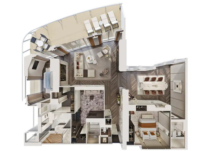 H2 - The Haven Deluxe Owner's Suite 197 m² / balkón 45 m². 18. paluba vpredu. Max 6 osôb. Výhody The Haven. 19 756 € 9 878 € za osobu