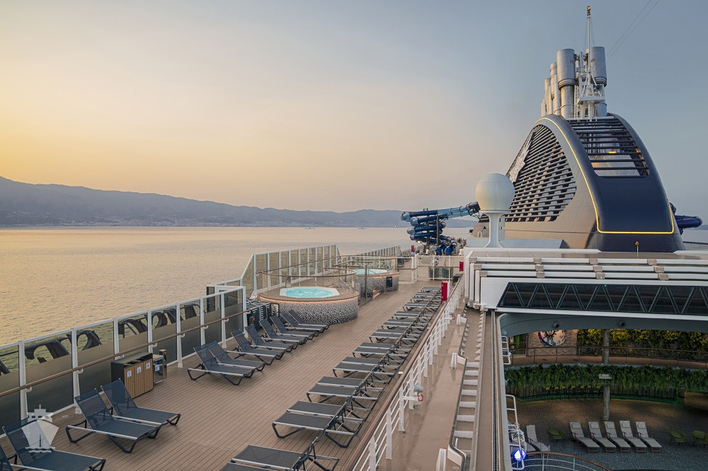 - Športové aktivity na otvorených palubách (jogging, basketbal, futbal, tenis), bazény a ležadlá
