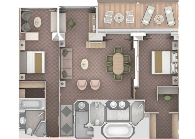 O2 - Owner's Suite 2 119 - 129 m² (vrátane balkóna 12 m²). Owners Suite S1 spojená s Panorama Suite PA 9. paluba - stred. Max 5 osôb. 59 200 € 59 200 € za osobu