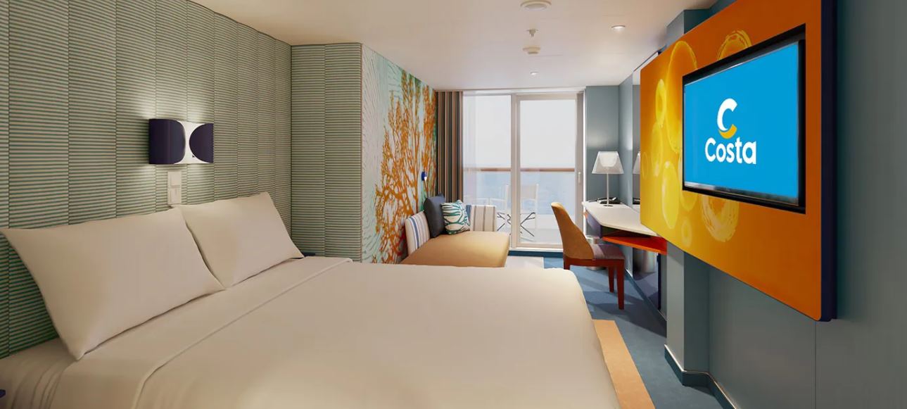| B3 MyCruise - Kajuta s balkónom 19 m² + balkón 4 m². 8-17. paluba. Max 2-4 osoby. Cenový model MyCruise. | 1 218 € 609 € za osobu |