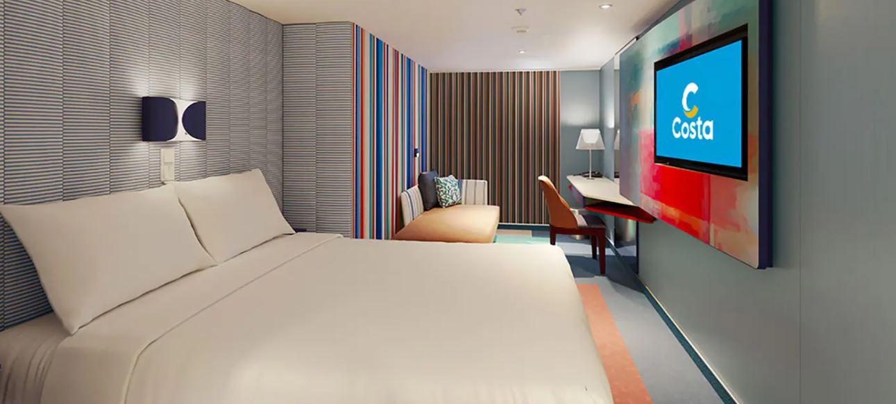 - Ubytovanie v kajute vybranej kategórie. Základné vybavenie: kúpeľňa s WC a sprchovacím kútom, 2 lôžka spojiteľné do manželskej postele, skrine, nočné stolíky, toaletný stolík a stolička, nastaviteľná klimatizácia, interaktívna satelitná TV s plochou obrazovkou, trezor, sušič na vlasy, uteráky a posteľné prádlo, Wi-Fi pripojenie (za poplatok), 24/7 kajutová služba (za poplatok).