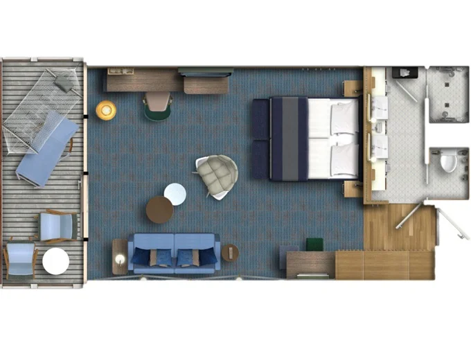 JKAO - Junior Suite s balkónom 26 m² + balkón 7 m² so stolom. 10,11. paluba. Max 4 osoby. Výhody Junior Suite. 13 016 € 3 254 € za osobu