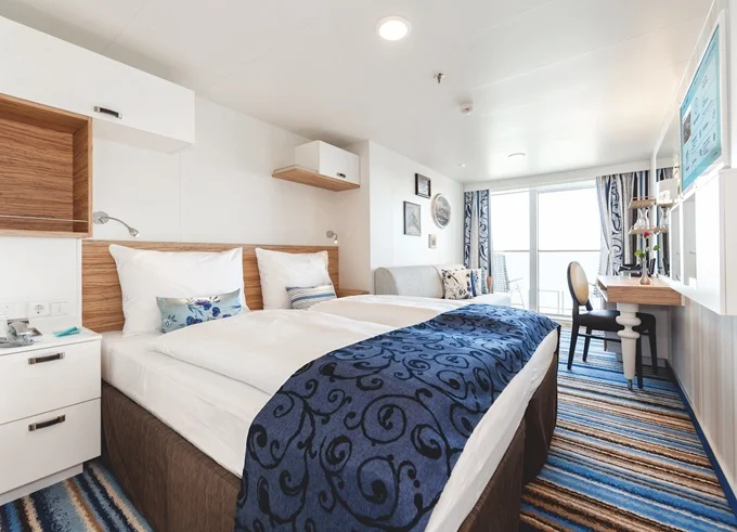 | BAHO - Kajuta s balkónom kat. H / obmedzený výhľad 17 m² + balkón 5 m² s obmedzeným výhľadom. 6-9. paluba. Max 3 osoby. | 2 728 € 2 728 € za osobu |