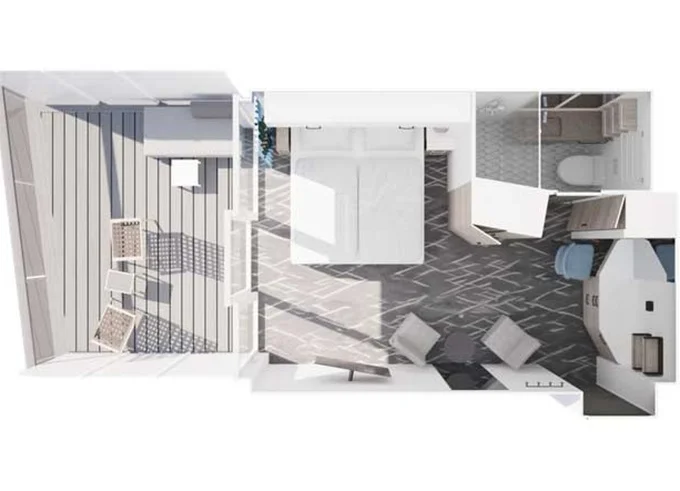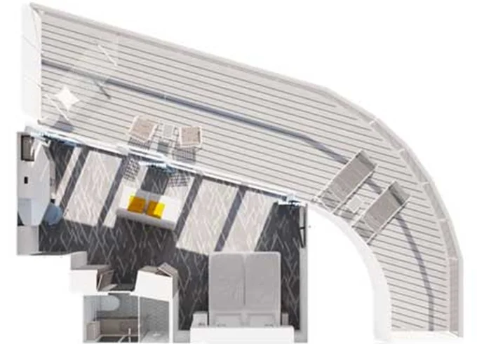 | VEKO - Kajuta s terasou 20 m² + balkón 13 m² so stoličkami a váľandou. 15. paluba. Max 2 osoby. | 4 708 € 4 708 € za osobu | ||