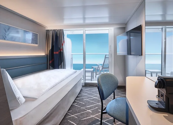 | SSAO - Schöne Aussicht Suite 39 m² + balkón 10-12 m² s ležadlami a hojdacou sieťou. 7-14. paluba. Max 4 osoby. Výhody Suite. | 8 738 € 4 369 € za osobu | ||