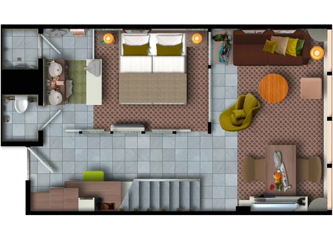 | SUTO - Themen Suite 54 m² + balkón 15 m² so stolom, ležadlom a hojdacou sieťou. Spálňa, obývacia časť, šatník. 14. paluba. Max 4 osoby. Výhody Suite. | 8 238 € 4 119 € za osobu | ||